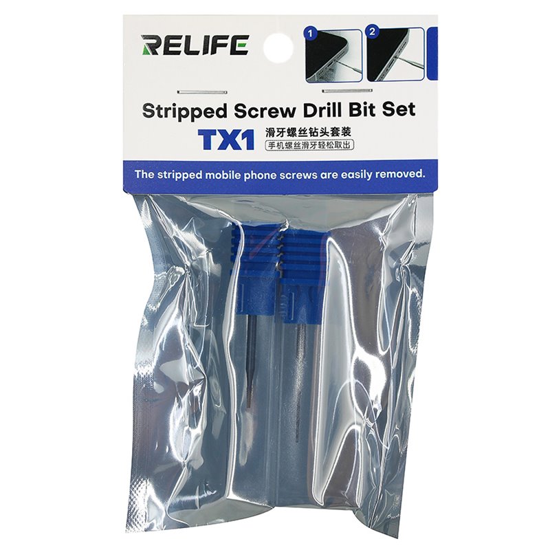 Набор для извлечения повреждённых винтов Relife TX1 (сверло 1 мм, экстрактор 1.5 мм) (176568)