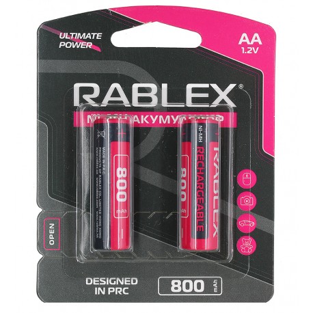 Аккумуляторная батарейка Rablex Rechargable R6 AA 800 мАч, 2 шт (176617)