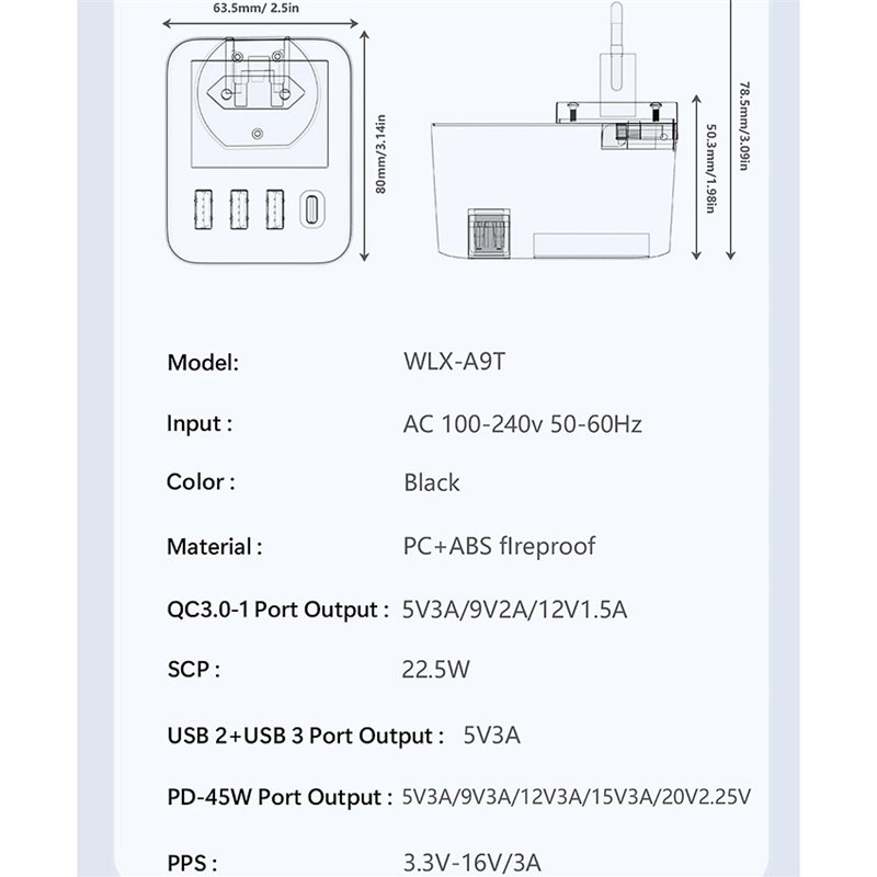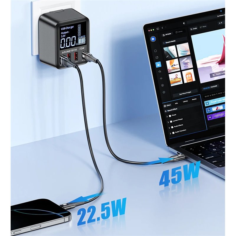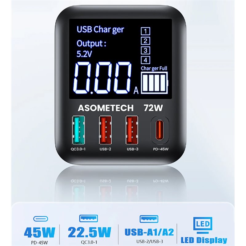 Зарядное устройство Asometech WLX-A9T 72W max 3USB QC(22.5W)+ 1Type-C PD (45W) (177085)