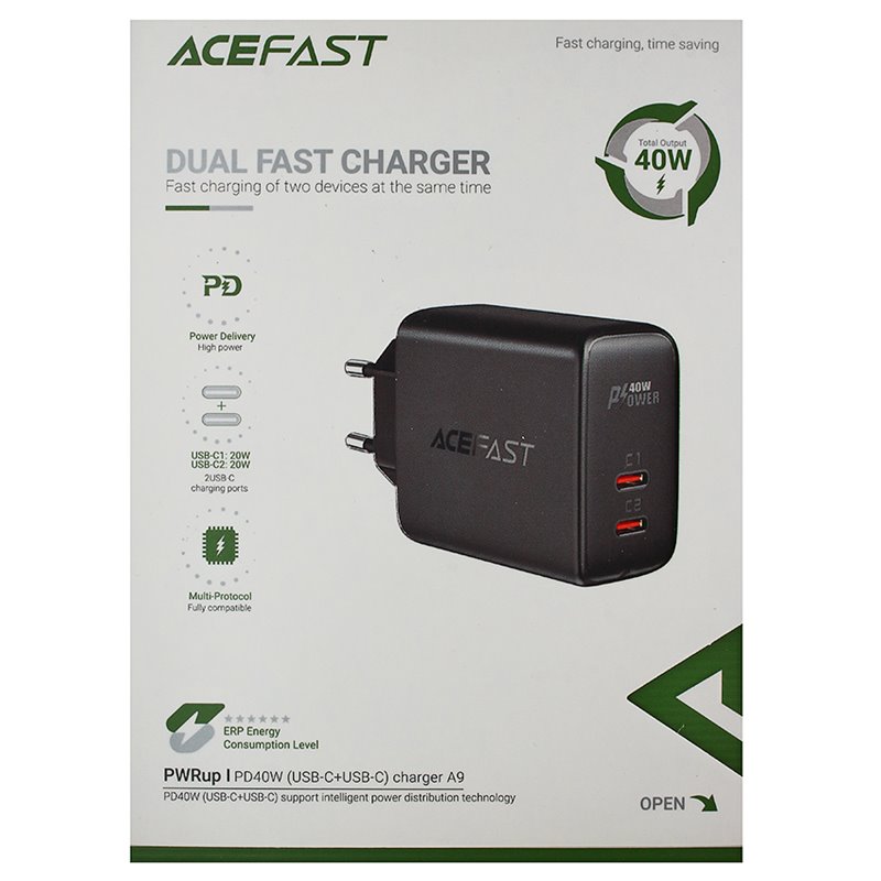 Зарядное устройство Acefast GaN A9 PD40W GaN 2Type-C (Черный) (177087)