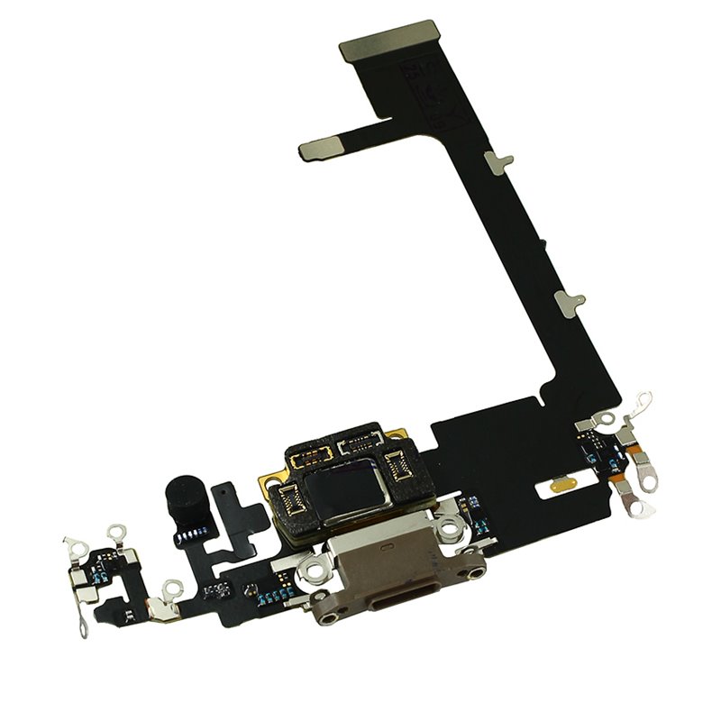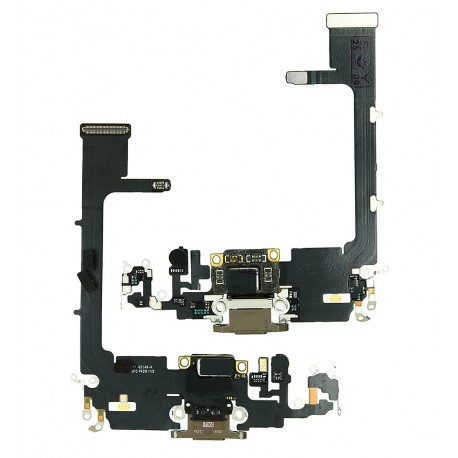 Шлейф iPhone 11 Pro, коннектора зарядки, коннектора навушників, золотистий, з мікрофоном, Original (PRC) (145317)