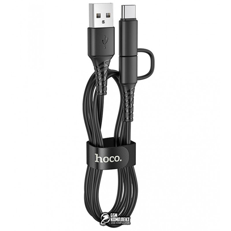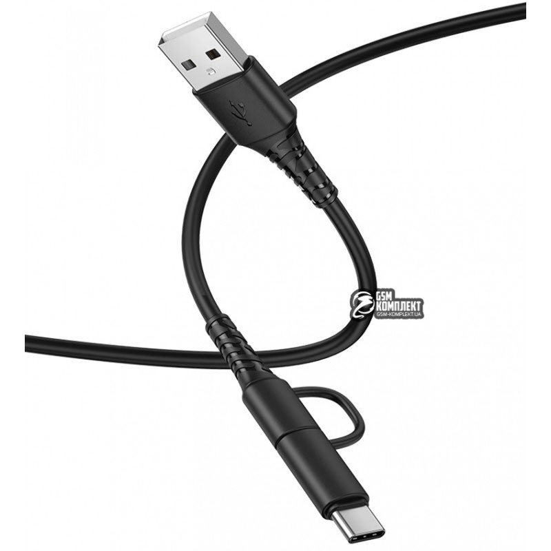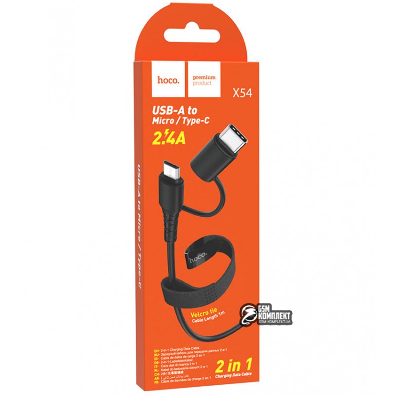 Кабель Micro-USB+Type-C - USB, 2в1, Hoco X54 Cool Dual, з кейсом, чорний (146401)