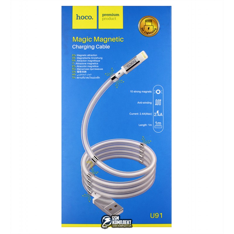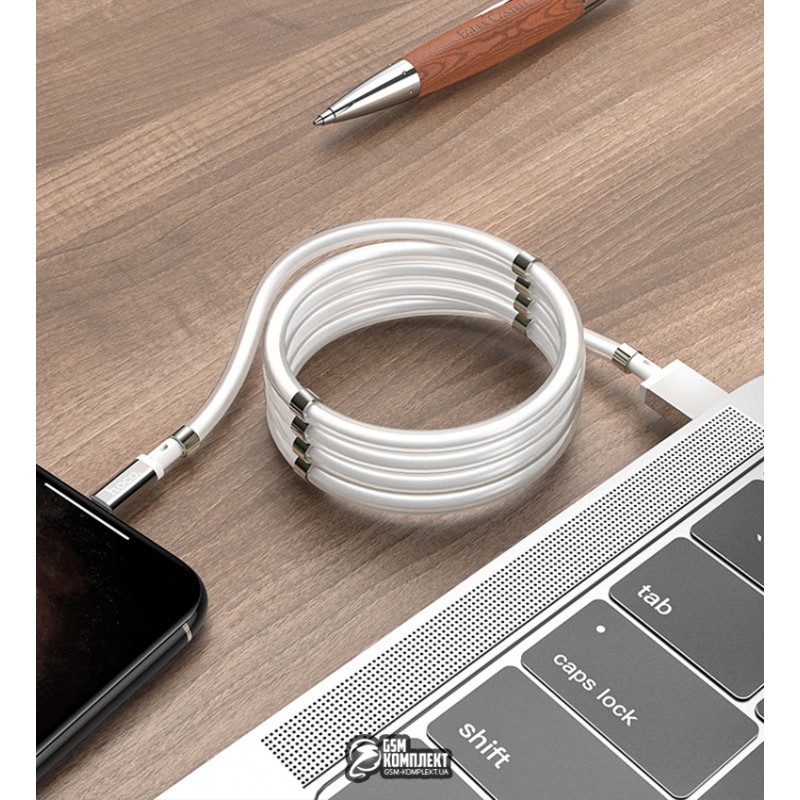 Кабель Lightning - USB, Hoco U91, з магнітним органайзером, 1 метр, 3А, білий (146628)