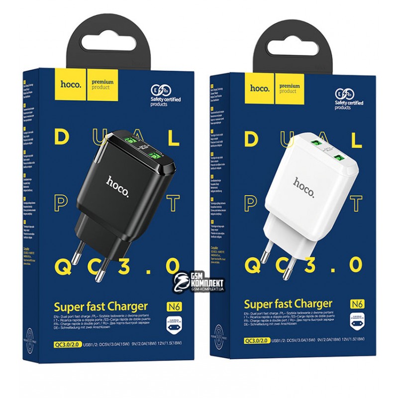 Зарядний пристрій HOCO N6 Charmer dual port QC3.0, чорний (148304)