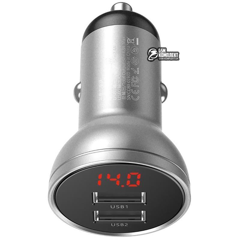Автомобільний зарядний пристрій Baseus Digital Display 2USB 4.8A 24Вт, дисплей (151072)
