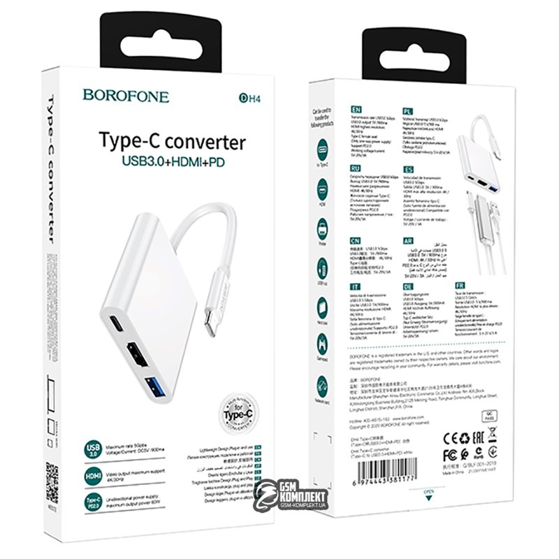 OTG перехідник Borofone DH4,Type-C на USB3.0+HDMI+PD (154247)