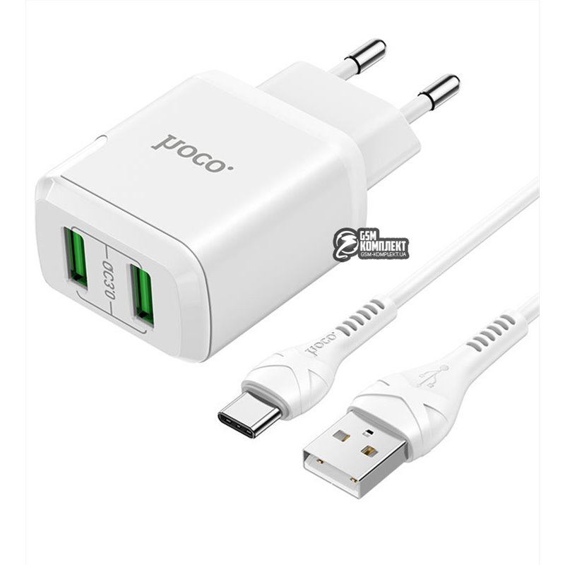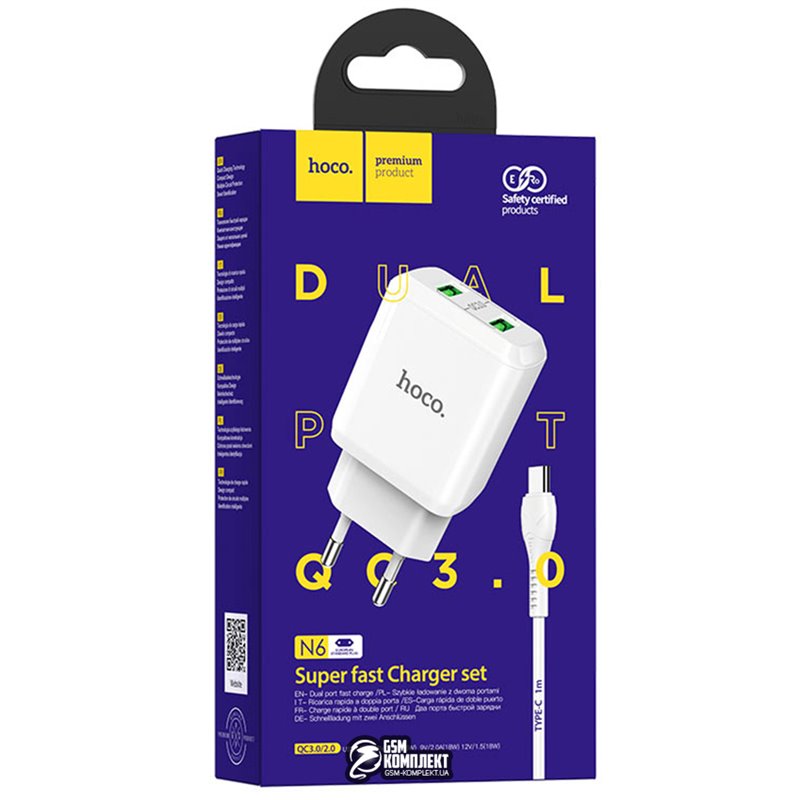 Зарядний пристрій HOCO N6 Charmer dual port QC3.0 charger set (Type-c), білий (155431)