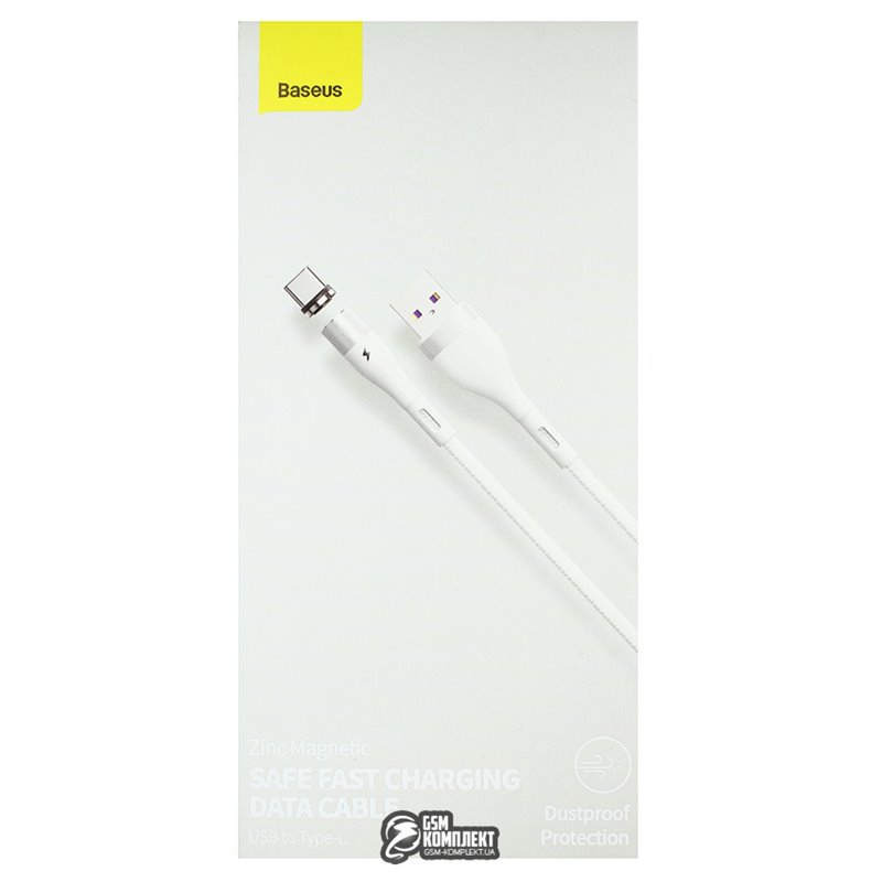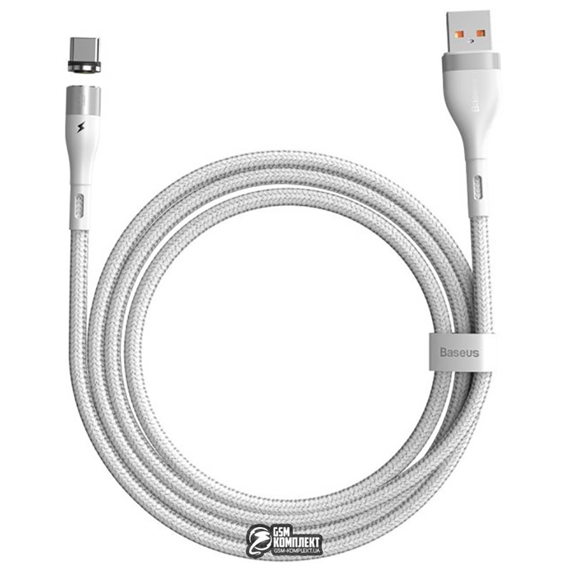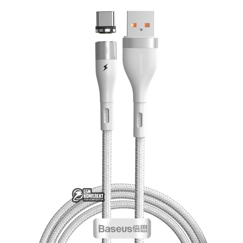 Кабель Type-C - USB, Baseus Zinc Magnetic Safe Fast Charging Data, 5А 1метр, білий (155434)