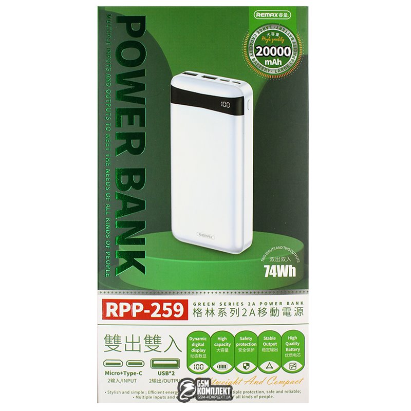 Power bank Remax RPP-259, 20 000 мАг, білий (155585)