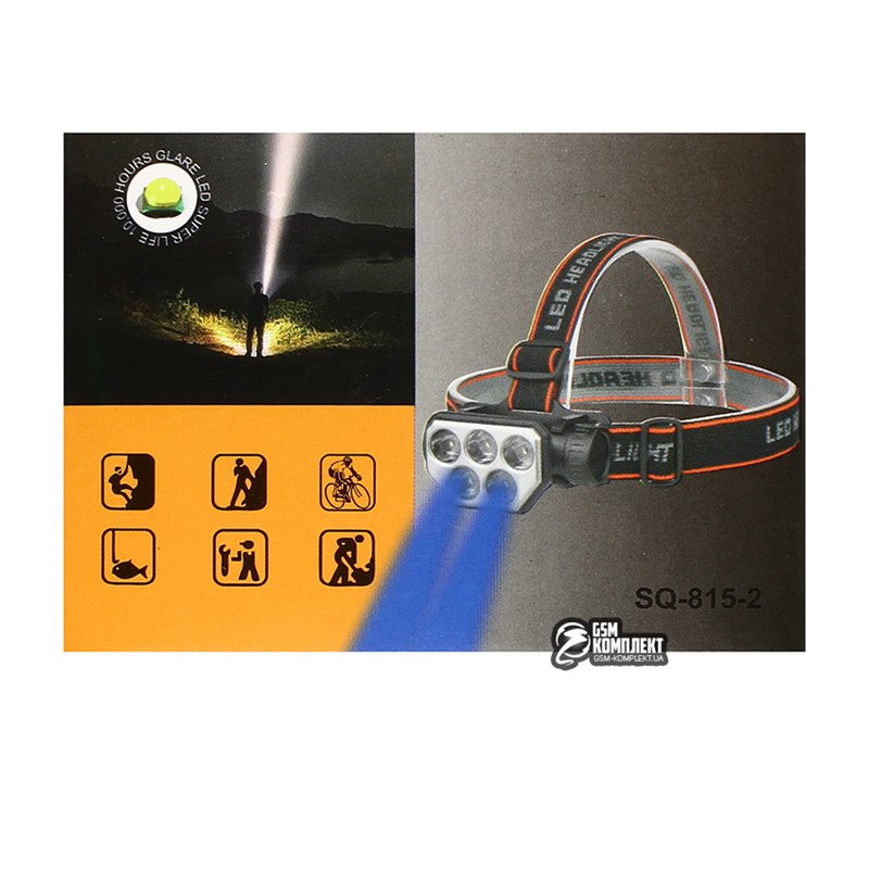 Налобний ліхтарик SQ-815-2-3LM+2LED (blue), вбудований акумулятор, ЗУ microUSB (156004)