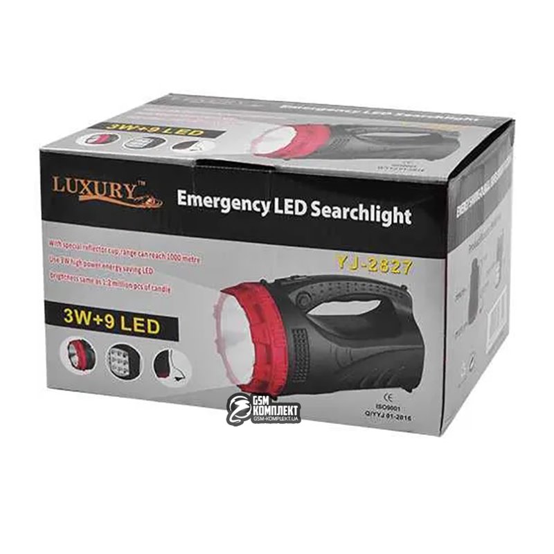 Ліхтарик Luxury 2827, 3W+9LED/25LED, ЗУ 220V, вбудований акумулятор (156005)