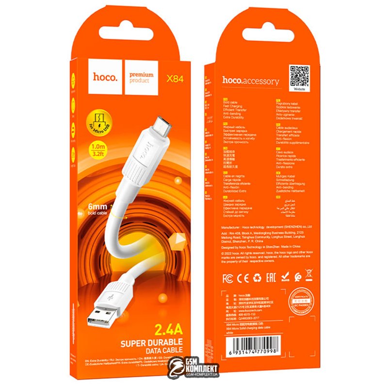 Кабель Micro USB-USB, Hoco X84, круглий, 1 метр, 2,4А, білий (155608)