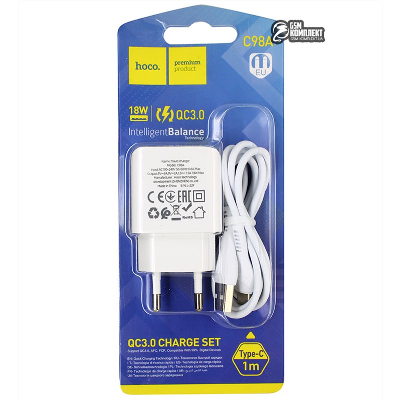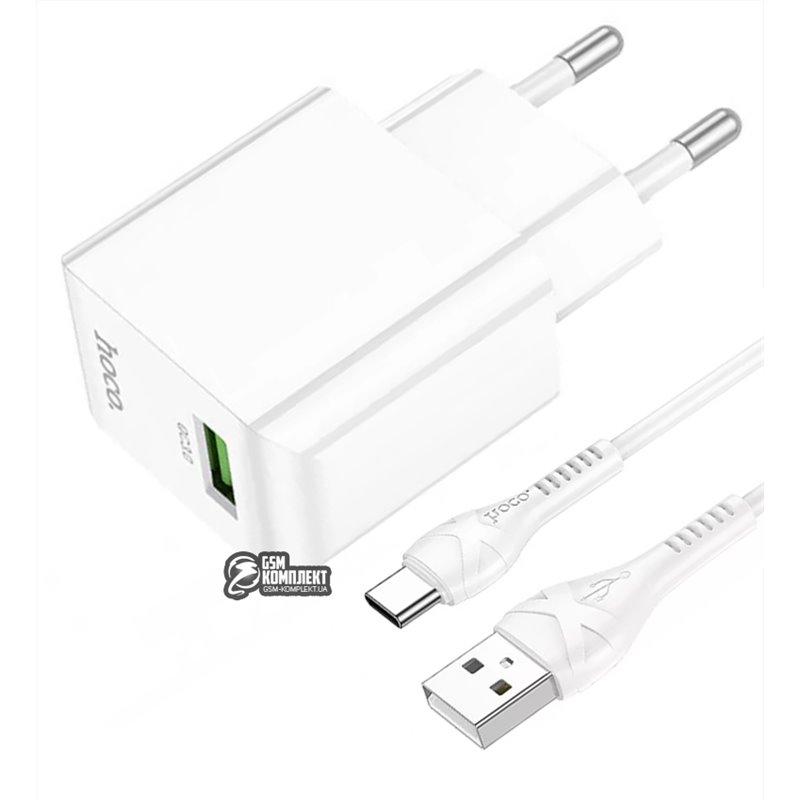 Зарядний пристрій Hoco C98A 18W (1 USB) + Кабель Type-C (white) (156066)