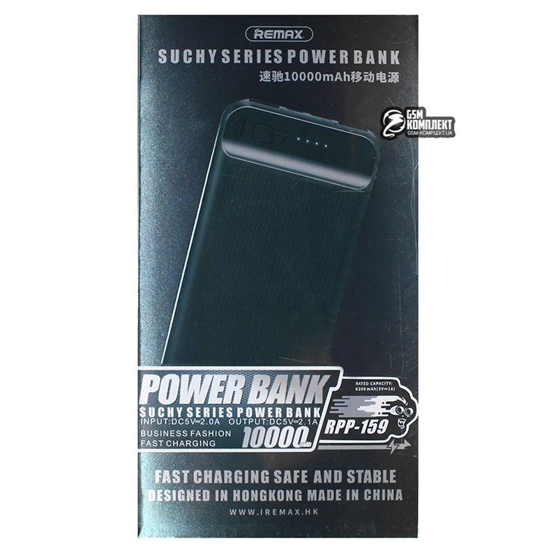 Power bank Remax RPP-159 Suchy series, 2USB, 2.1A, 10 000 мАг, чорний (156152)