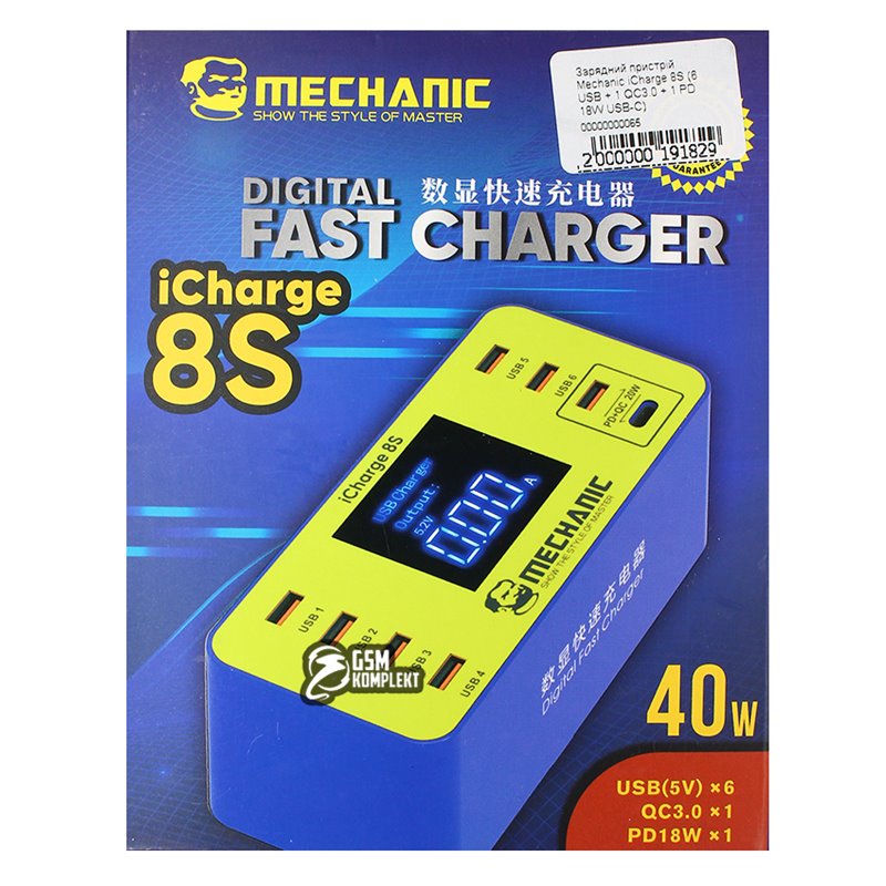 Зарядний пристрій Mechanic iCharge 8S (6 USB + 1QC3.0 + 1PD 18W USB-C) (158236)
