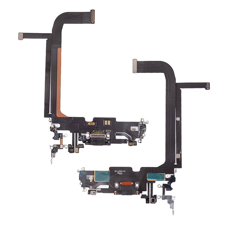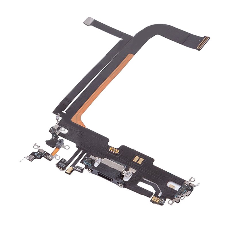 Шлейф для Apple iPhone 13 Pro Max, конектора зарядки, чорний, з компонентами, з мікрофоном, High quality, Graphite (170608)
