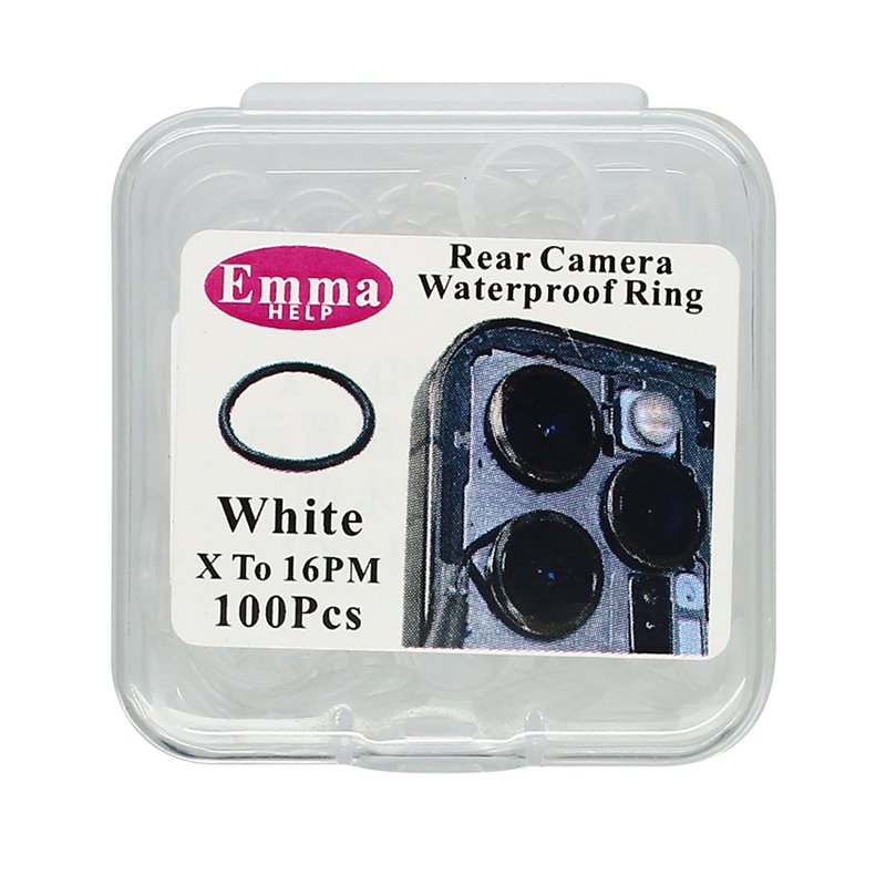 Резинка під кільце основної камери для Apple iPhone X-16 Pro Max, iPhone 11, iPhone 11 Pro, iPhone 11 Pro Max, iPhone 12, iPhone 12 Pro, iPhone 12 Pro Max, iPhone 13, 100 шт., біла (172373)