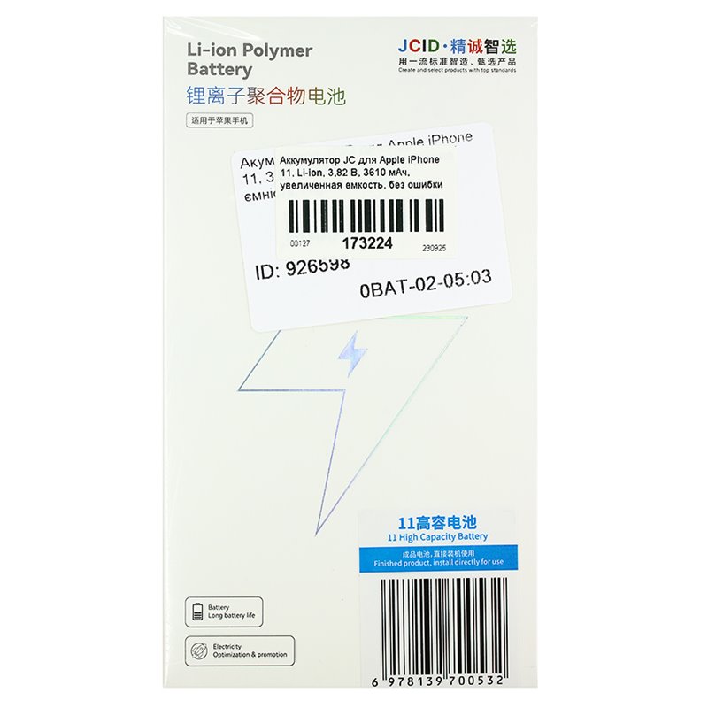 Акумулятор JC для Apple iPhone 11, Li-ion, 3,82 В, 3610 мАг, збільшена ємність, без помилки (173224)