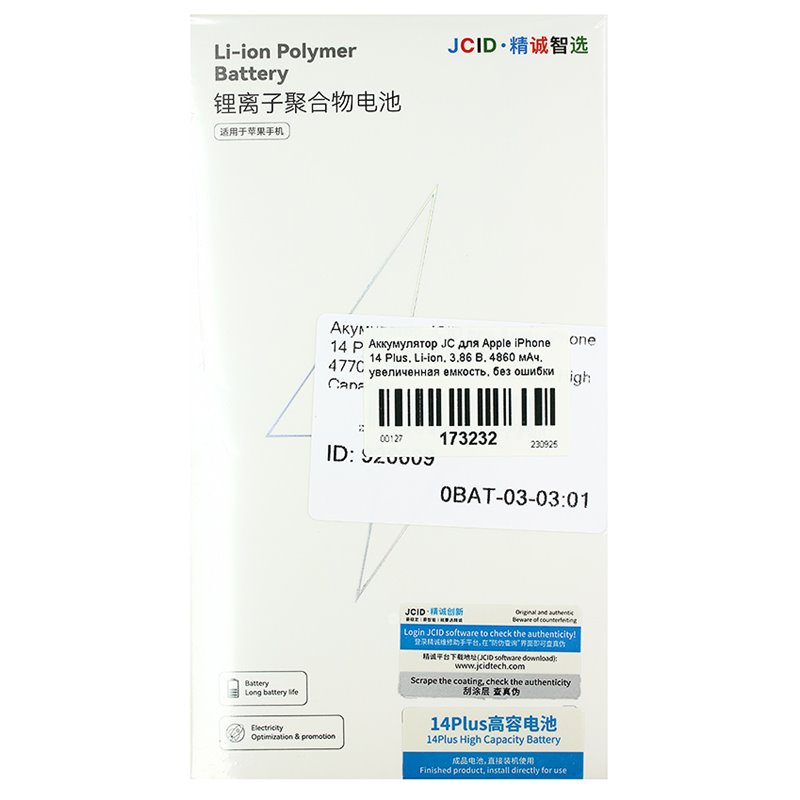 Акумулятор JC для Apple iPhone 14 Plus, Li-ion, 3,86 В, 4860 мАг, збільшена ємність (173232)