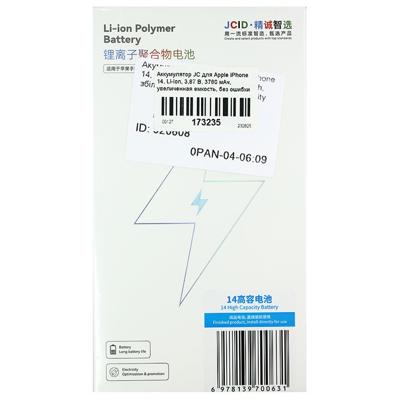 Акумулятор JC для Apple iPhone 14, Li-ion, 3,87 В, 3780 мАг, збільшена ємність, без помилки (173235)