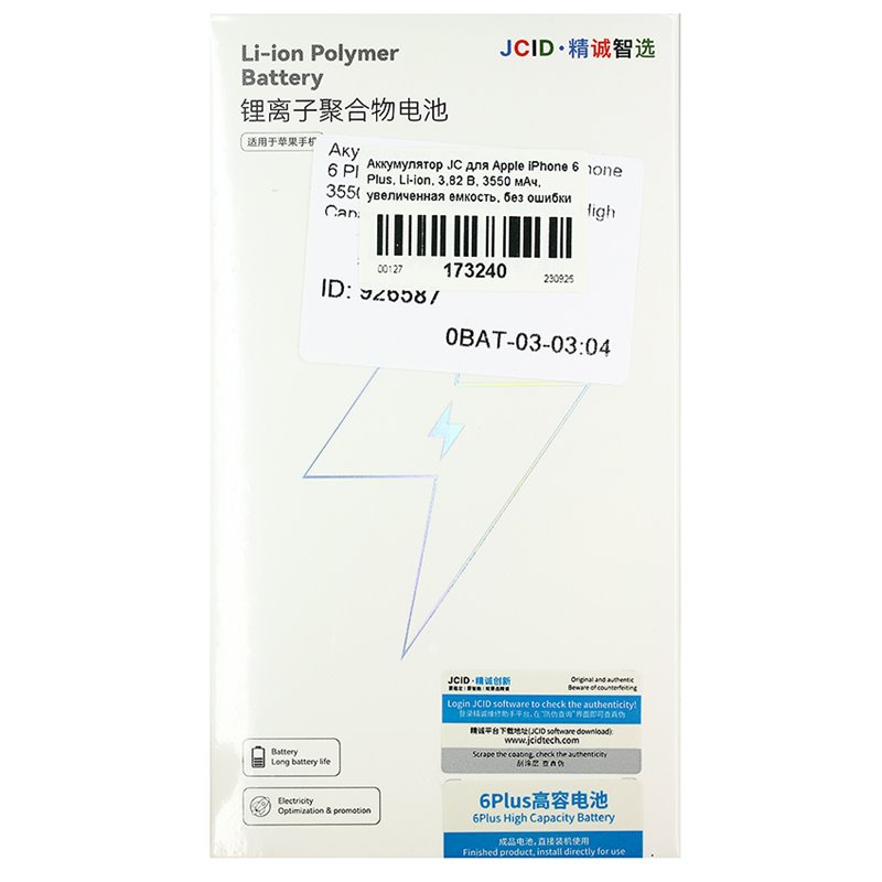 Акумулятор JC для Apple iPhone 6 Plus, Li-ion, 3,82 В, 3550 мАг, збільшена ємність, без помилки (173240)