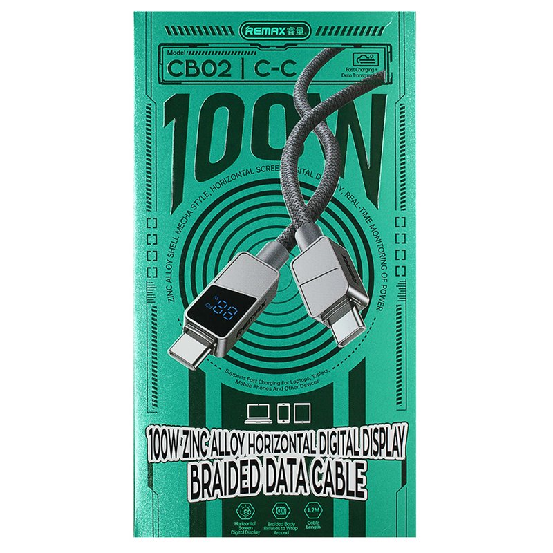 Кабель Type-C - Type-C Remax CB02 Armor тканевий, 100 Вт, 1.2 м, чорний (174686)