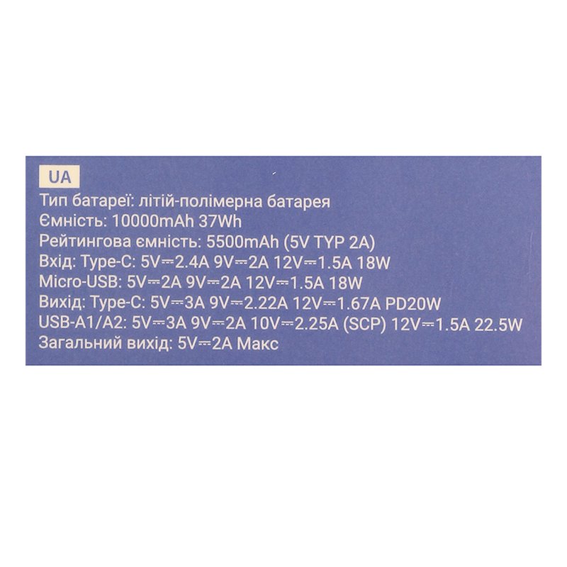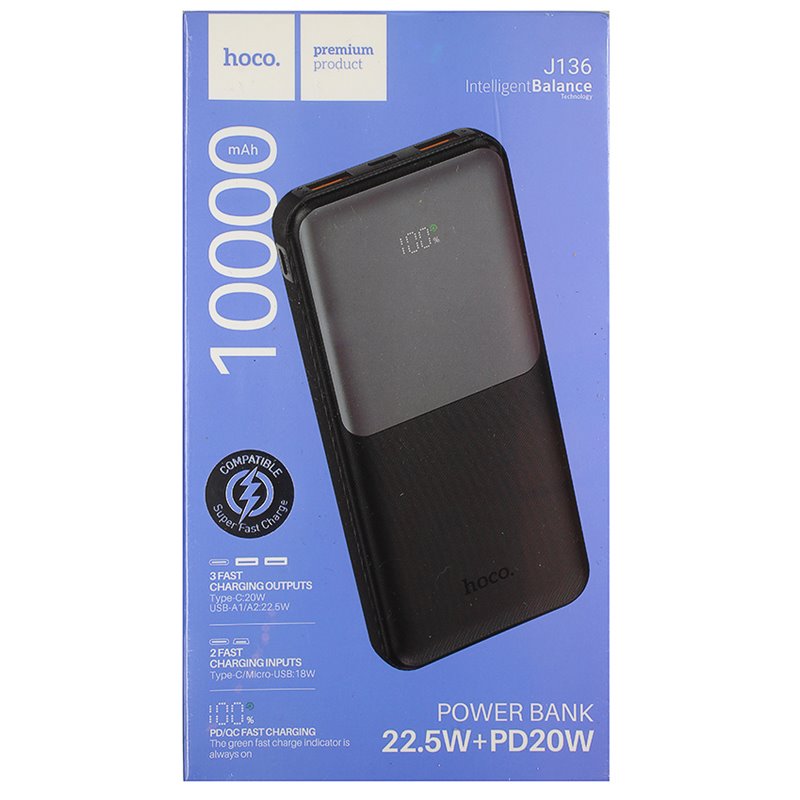 Power bank Hoco J136 10000 мАг Sirui, USB + Type-C, 22.5 Вт/3 А, PD/QC (чорний) (175462)