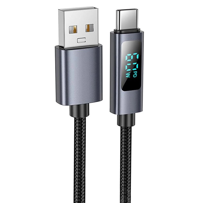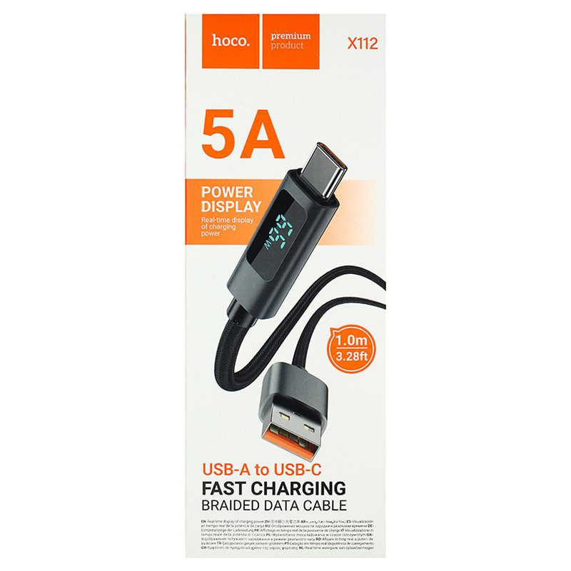 Кабель Type-C - USB Hoco X112 Favor з дисплеєм, 1 м, 2.4 А, чорний (175468)