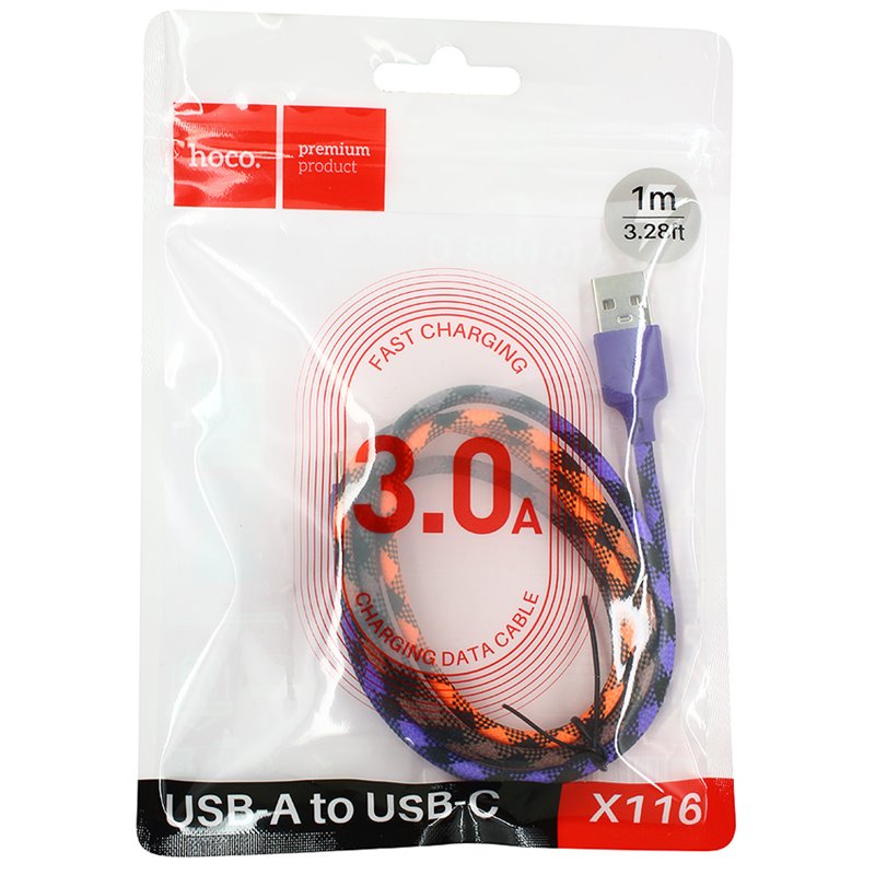 Кабель Type-C - USB Hoco X116 Meridian тканевий, 3 А, 1 м, фіолетовий (175469)