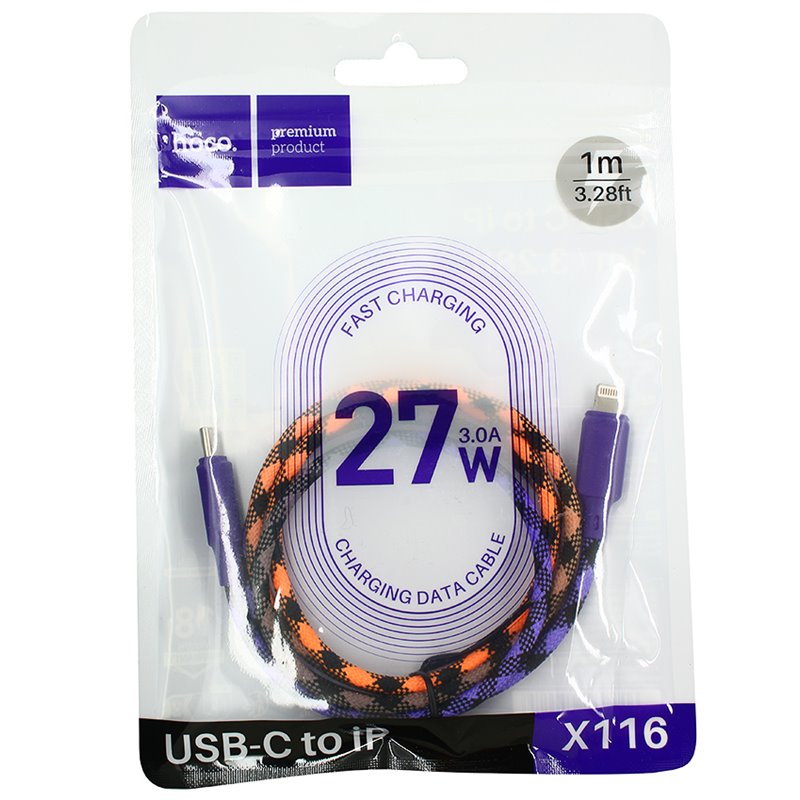 Кабель Type-C - Lightning Hoco X116 Meridian тканевий PD, 1 м, 27 Вт, фіолетовий (175472)