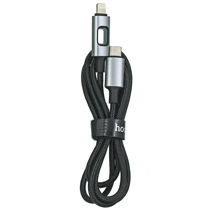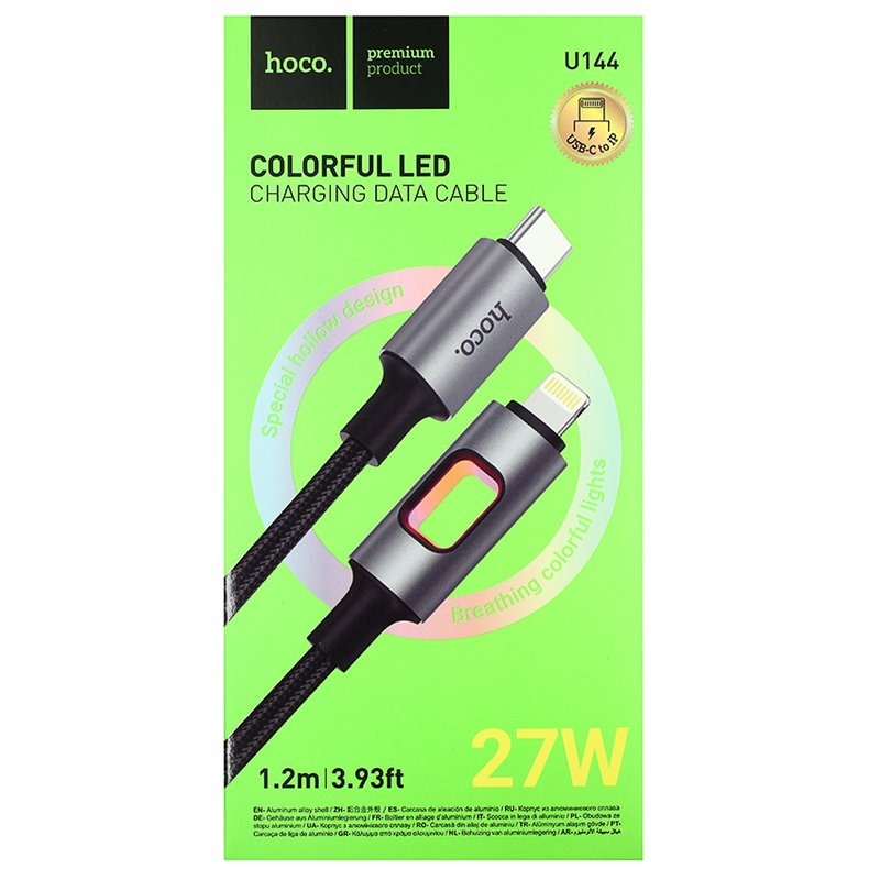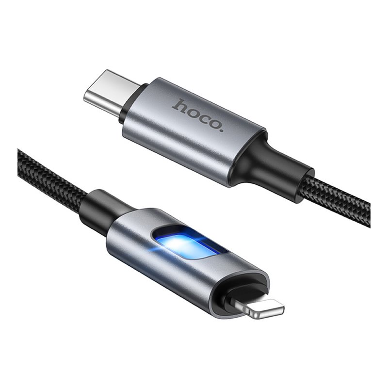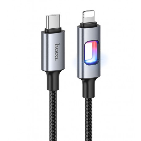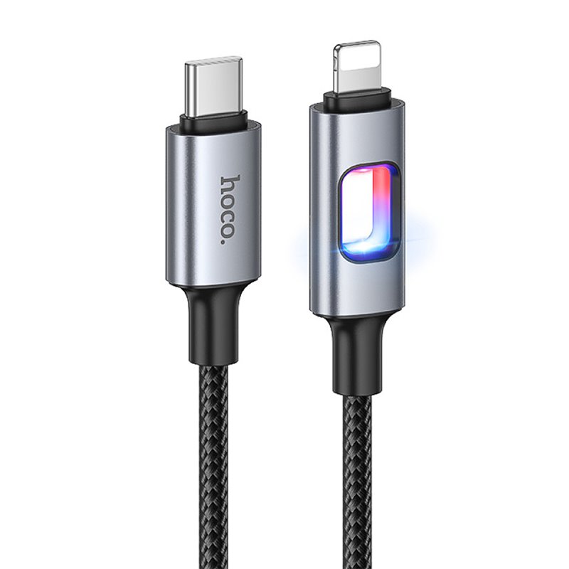 Кабель Type-C - Lightning, Hoco U144 PD charging data, 27Вт, 1 метр, з LED індикатором, чорний (175483)