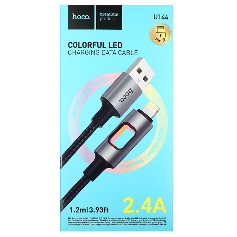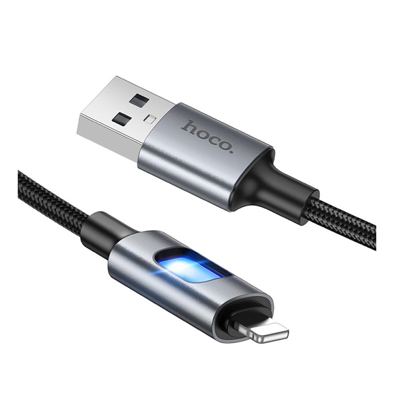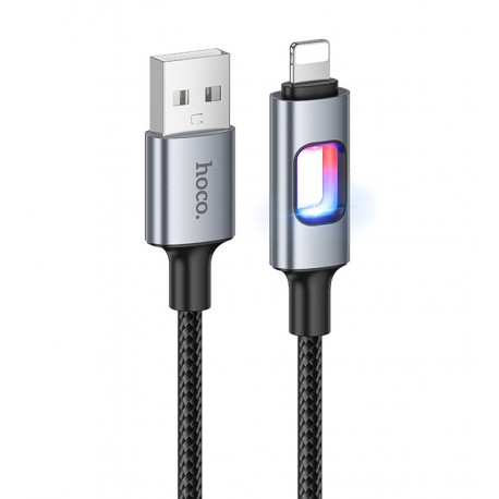 Кабель Lightning - USB, Hoco U144 charging data, 2.4А, 1 метр, з LED індикатором, чорний (175484)