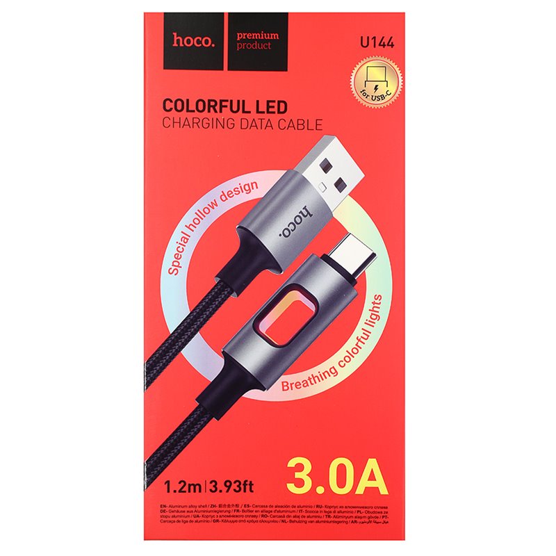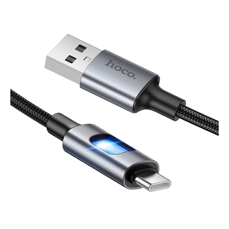 Кабель Type-C - USB, Hoco U144 New PD charging data, 3А, 1.2 метр, LED індикатор, чорний (175486)