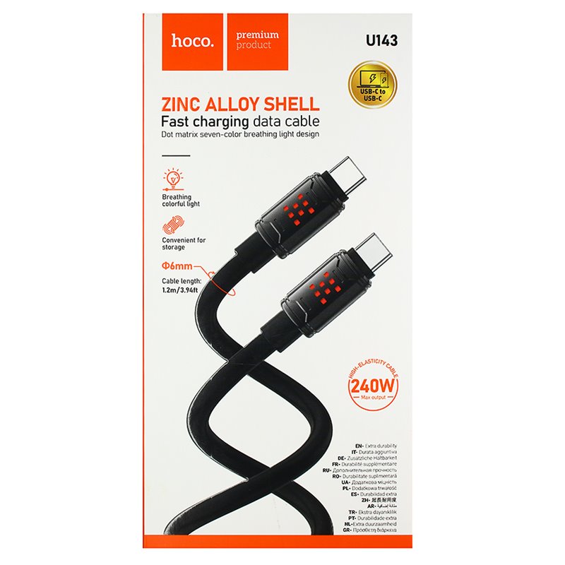 Кабель Type-C - Hoco U143 Joy PD charging data, 240Вт, 1.2 метр, з LED індикатором, чорний (175487)