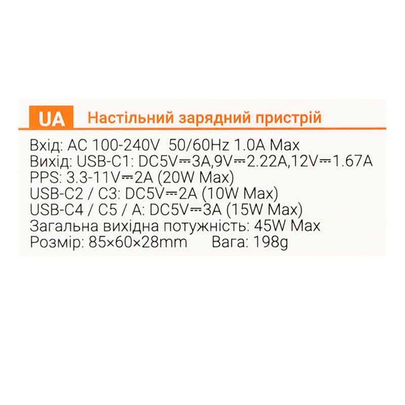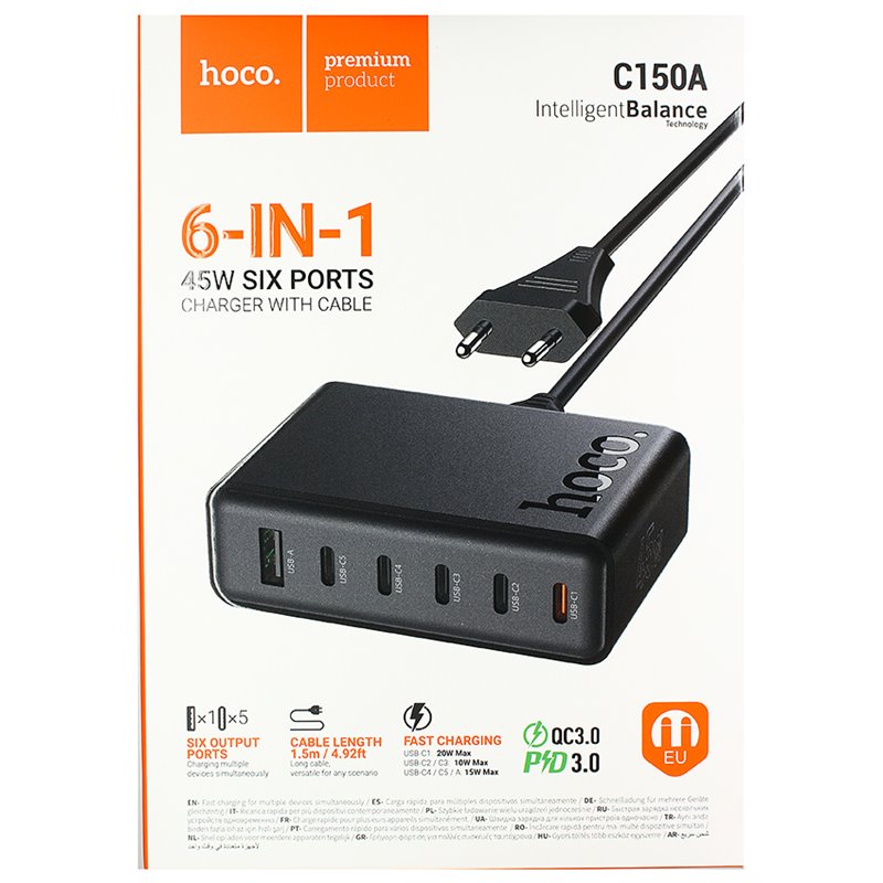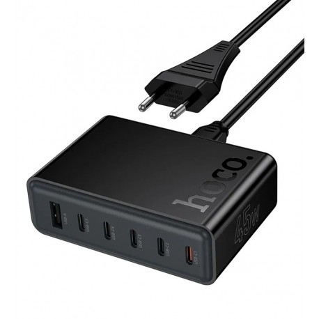 Зарядний пристрій Hoco C150A Modern PD, 6 портів (USB + 5 Type-C), 45 Вт/3 А, PD/QC (чорний) (175488)