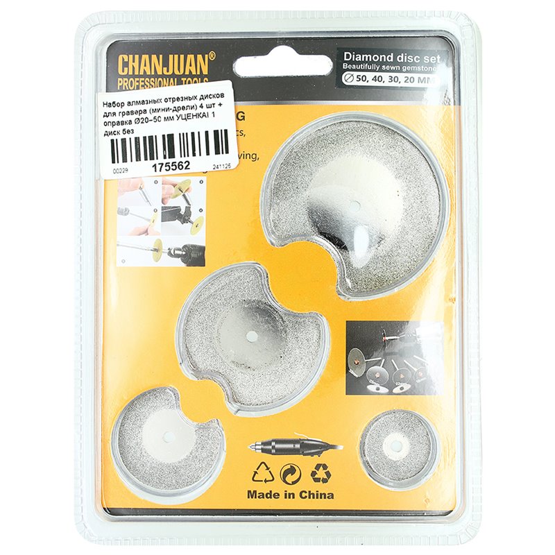 Набір відрізних алмазних дисків для гравера (міні-дрилі) 4 шт + оправка 20 50 мм УЦІНКА! 1 диск без напилення (175562)