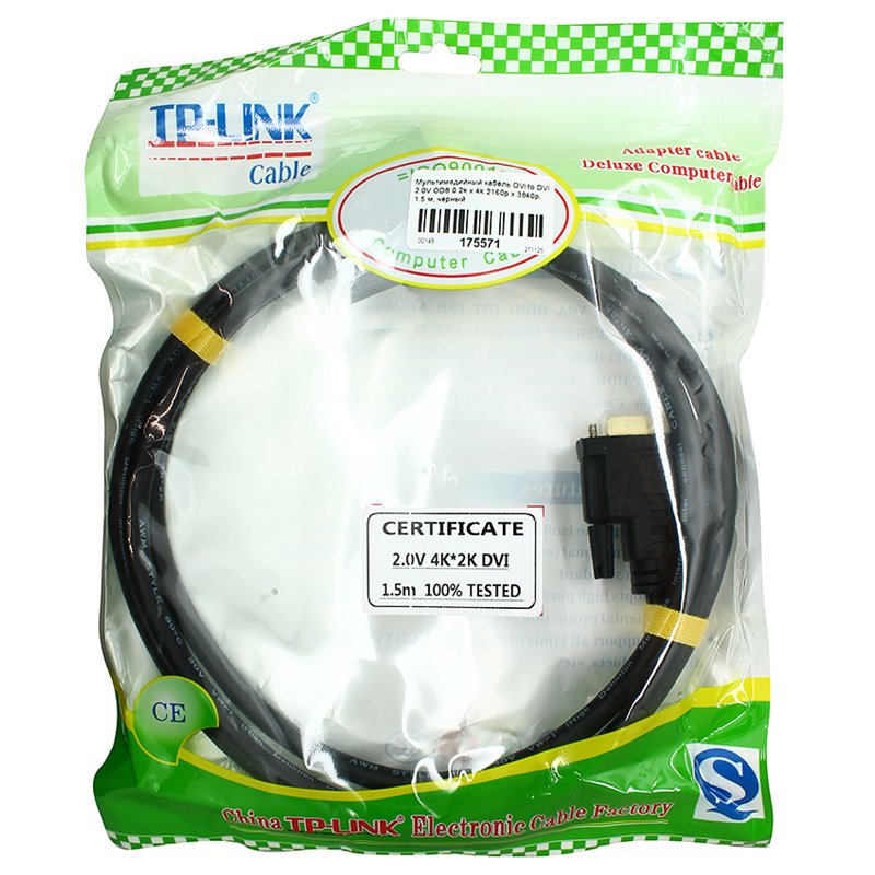 Мультимедійний кабель DVI to DVI 2.0V OD8.0 2k x 4k 2160p x 3840p, 1.5 м, чорний (175571)