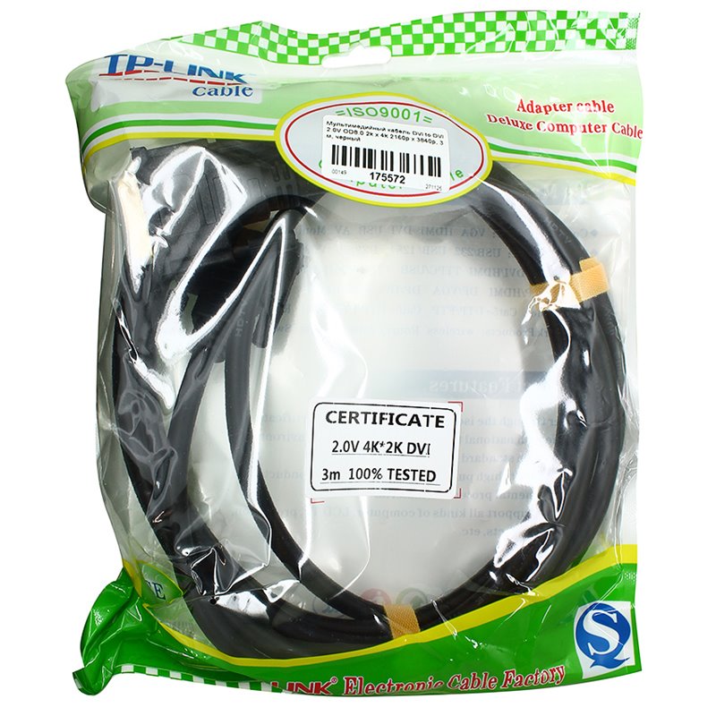 Мультимедійний кабель DVI to DVI 2.0V OD8.0 2k x 4k 2160p x 3840p, 3 м, чорний (175572)