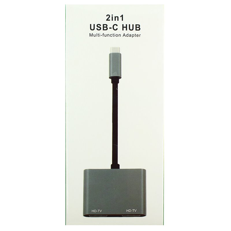 Адаптер перехідник Type-C - 2 HDMI, grey (175577)