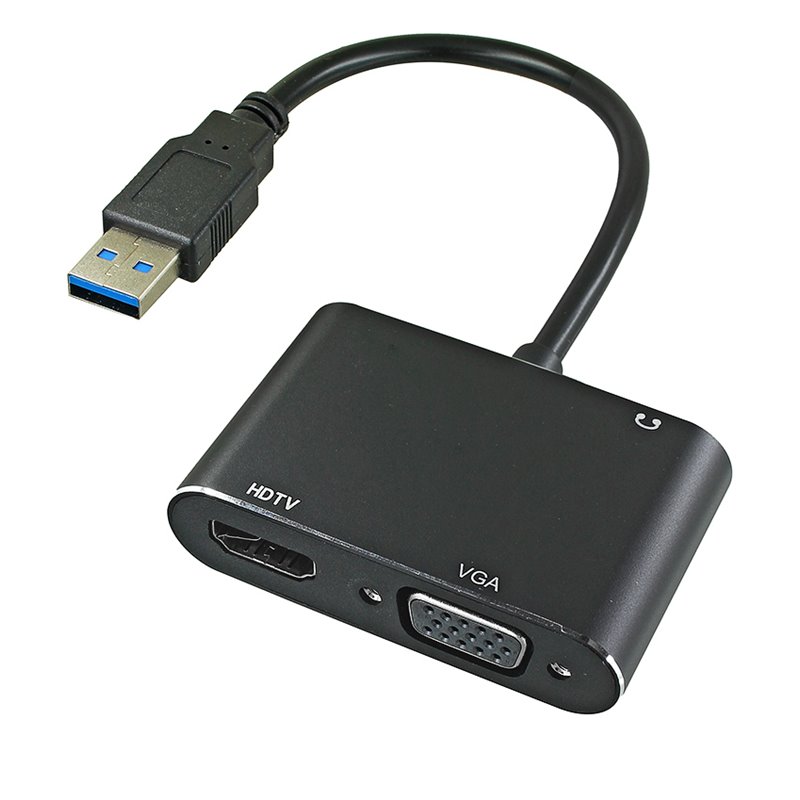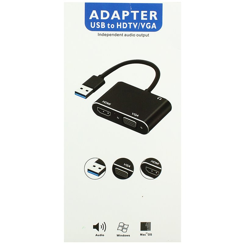 Адаптер перехідник USB to HDMI - VGA, чорний (175578)