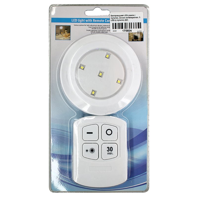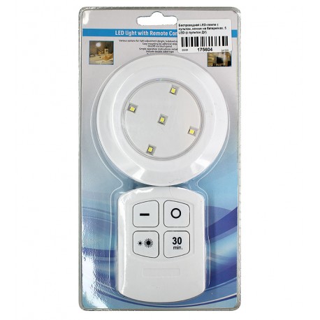 Беспроводная LED-лампа з пультом, нічник на батарейках, 5 LED (з пультом ДУ) (175604)