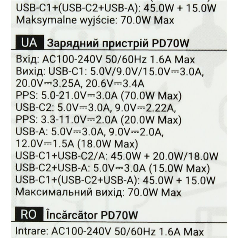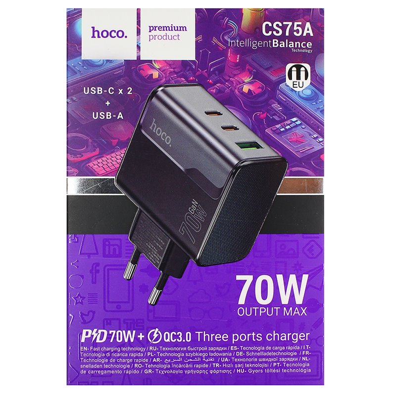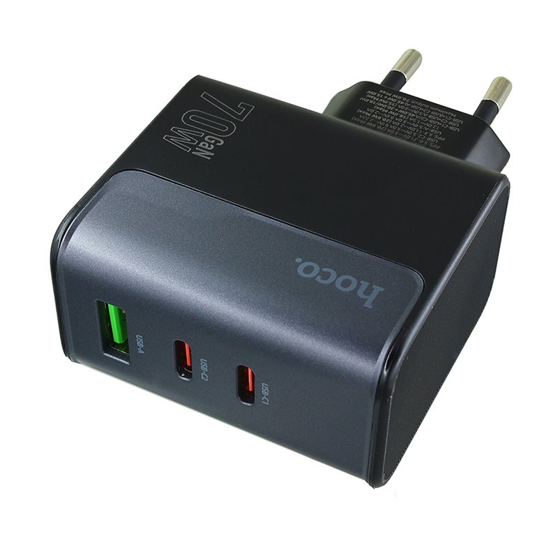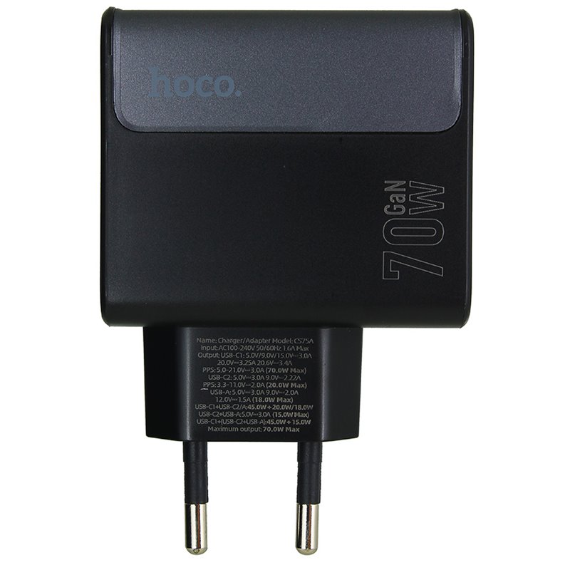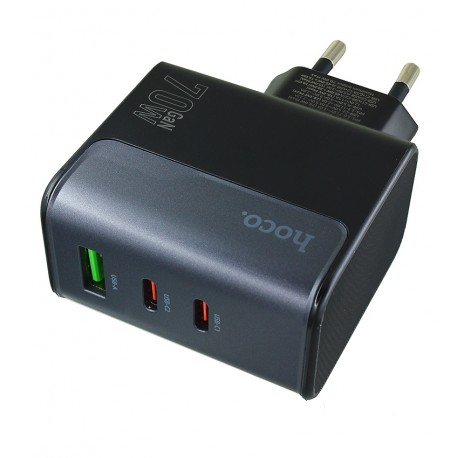 Зарядний пристрій Hoco CS75A, 70 Вт, 2 Type-C PD, USB QC, з кабелем Type-C Type-C, чорний (175633)