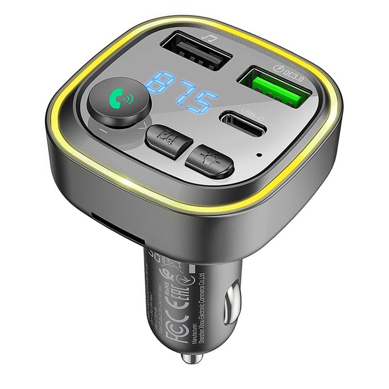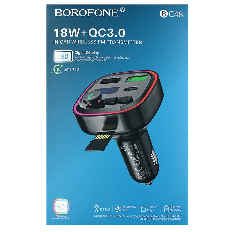 Автомобільний зарядний пристрій Borofone BC48 Bluetooth з FM-модулятором (Type-C, 2 USB QC3.0, USB, TF card), чорний (175635)