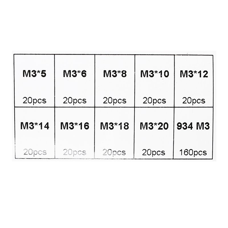 Набір гвинтів нержавіючих М3 з гайками 340шт. нерж. 304 (176226)