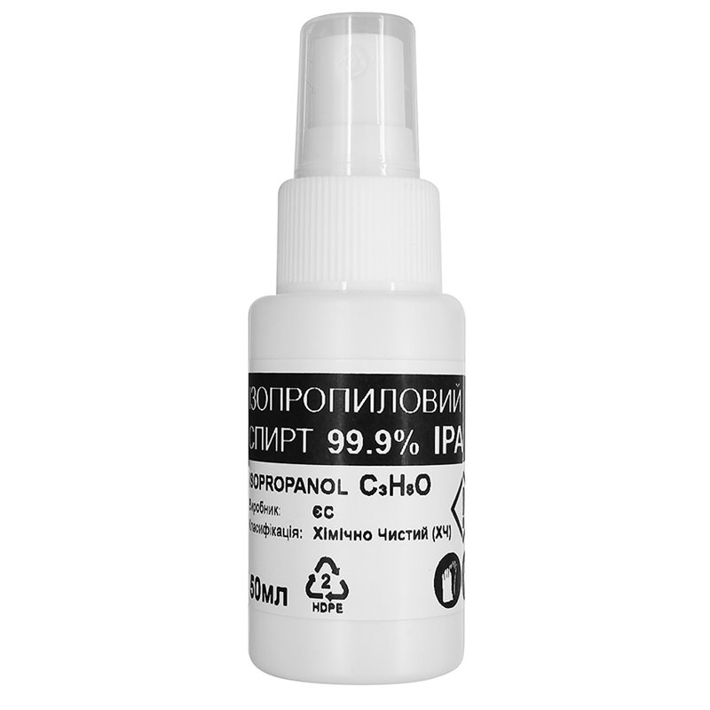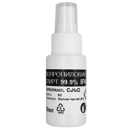 Спирт ізопропіловий, абсолютизований 99,9 , 50 мл (хімічно чистий), тара HDPE з розпилювачем (176299)