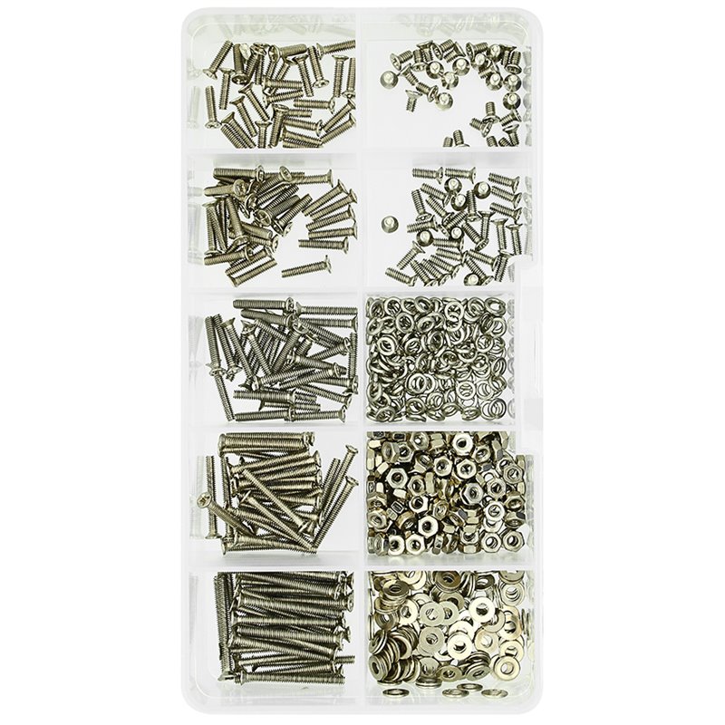 Набір нікельованого кріплення М2 гвинт потайний PH, гайка, шайба, гровер 660 шт. (176377)