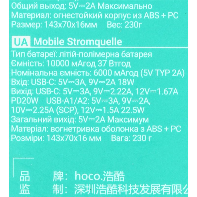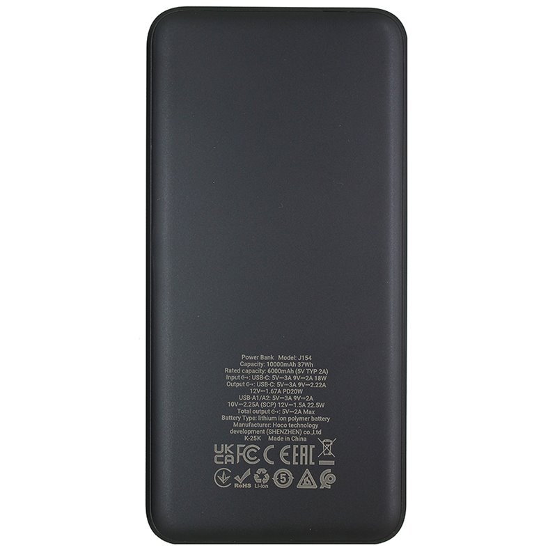 Power bank Hoco J154, 10000 мАг, 2USB/Type-C, 22.5W + PD 20W, з дисплеєм, чорний (176966)