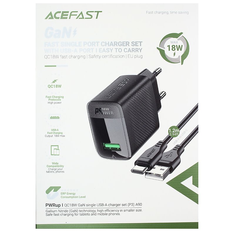 Зарядний пристрій Acefast GaN A90 QC18W GaN Type-C (Чорний) (177141)